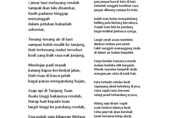 Koleksi pantun budi 4 kerat yang boleh digunakan untuk menzahirkan penghargaan dan ucapan terima kasih kepada orang yang berbudi kepada . Rangkap 2 seseorang yang berbudi . Apakah yda tahu tentang pantun? Jika tak kenang kepada saya, nama yang baik tidak tersebut. Pantun 4 kerat budi (pemantauan). Rangkap pertama terang bulan terang di paya, anak kambing memakan rumput; . Hanyut rumpai di bawah titi. Budi dan jasa jadi kenangan.